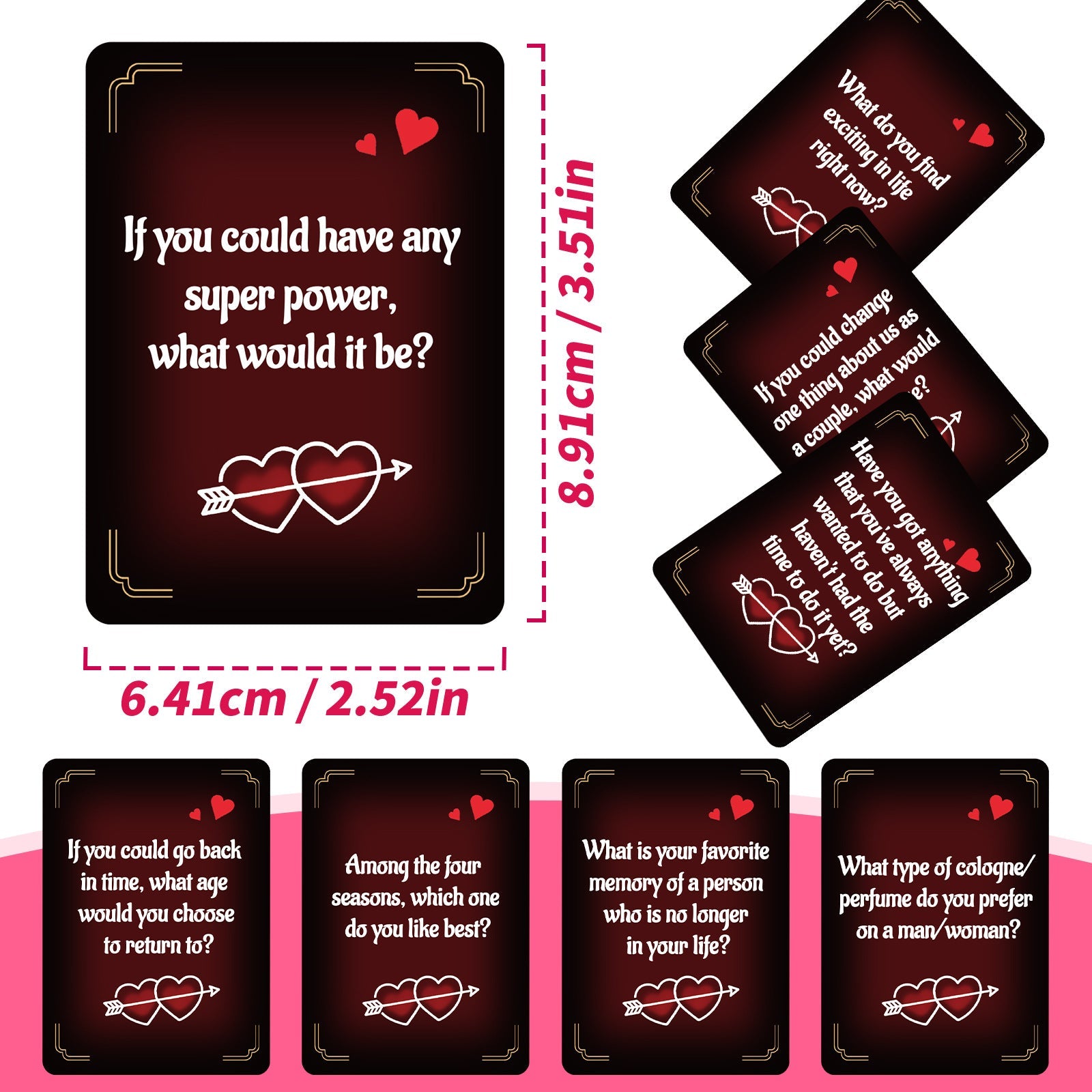 Each card offers a thoughtfully written prompt — sometimes light, sometimes deep — designed to help you and your partner slow down, open up, and truly listen to each other.